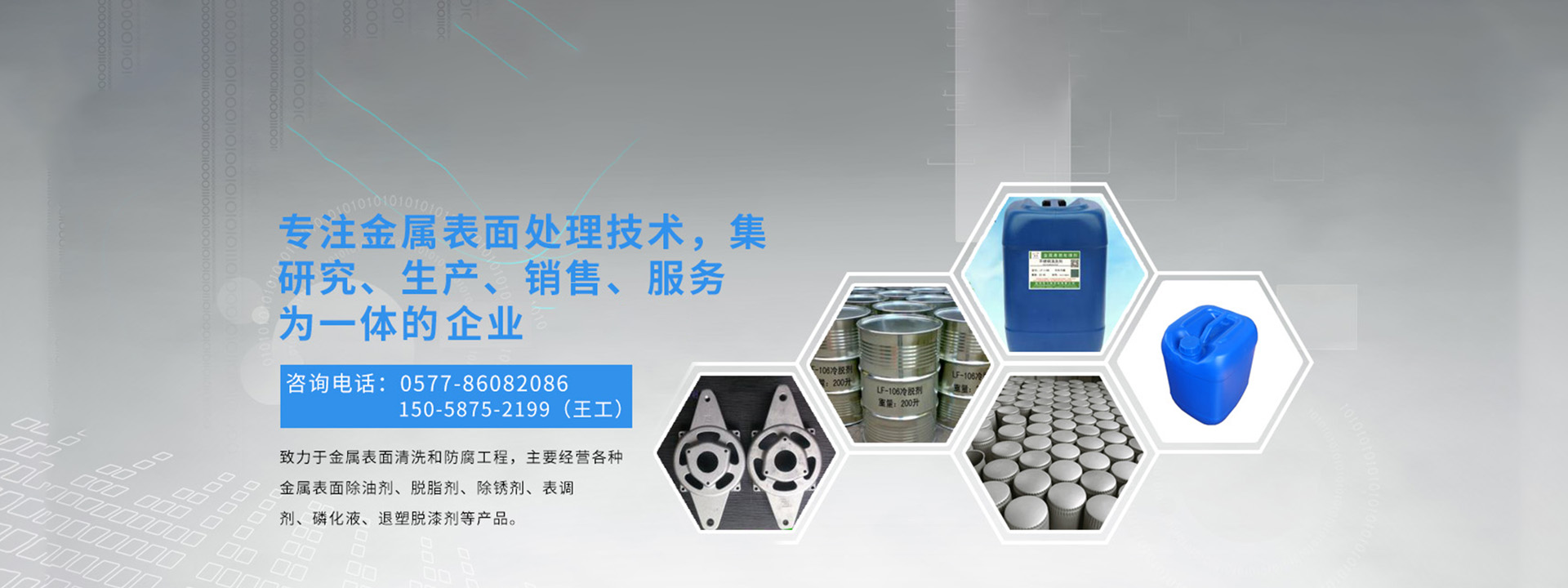 溫州龍飛環(huán)保科技有限公司是金屬表面處理技術(shù)集研究、生產(chǎn)、銷售、服務(wù)為一體的高新科技企業(yè),致力于金屬表面清洗和防腐工程,主要經(jīng)營各種金屬表面除油劑、脫脂劑、除銹劑、表調(diào)劑、磷化液、退塑脫漆劑、除蠟水、防銹水防銹油、封閉劑、鈍化劑、發(fā)黑劑、著色劑、化學(xué)拋光劑、合成乳化劑、水處理劑等金屬表面處理劑,廣泛適用于產(chǎn)品的噴塑、噴漆、噴砂、電泳、電鍍前的表面處理以及表面終處理,現(xiàn)已涉通用機(jī)械零部件、汽摩配件、五金及電工工具、電器電腦、潔具閥門、教學(xué)儀器等。
